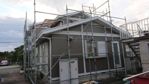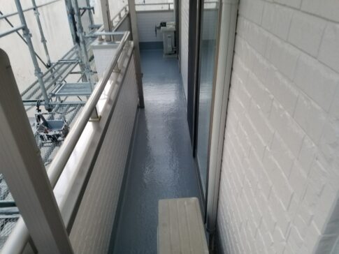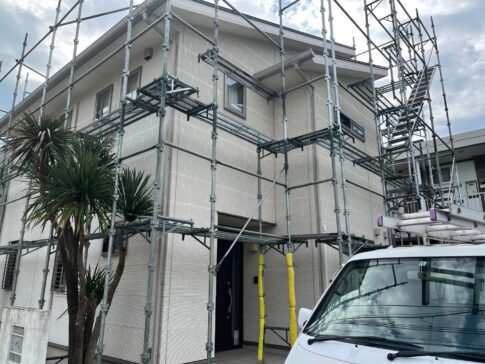鼻隠し塗装の途中で、こちらの物件は現場作
