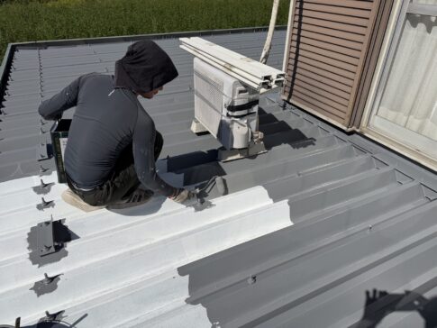 養生作業を終え、次に行った作業は外壁塗装下塗りです。
