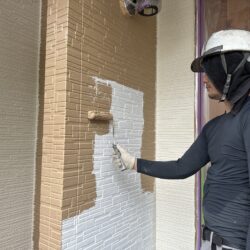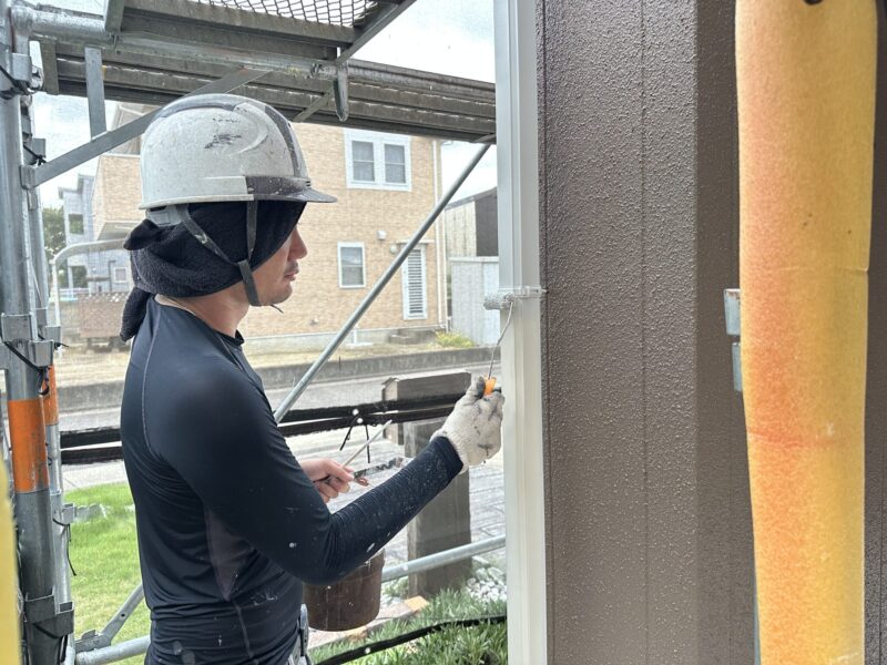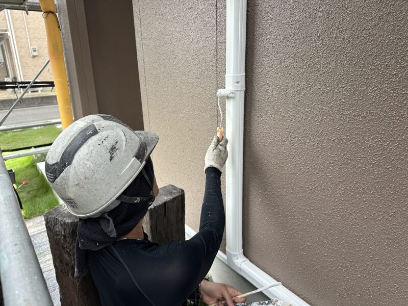 水切り、樋、エアコンダクト、シャッターボックスなどの付帯部塗装を行いました。外壁や屋根同様に、付帯部も経年劣化しているので、塗装する事でピカピカになります。こちらの物件は付帯部塗装の途中で、本日の現場作業は終了です。