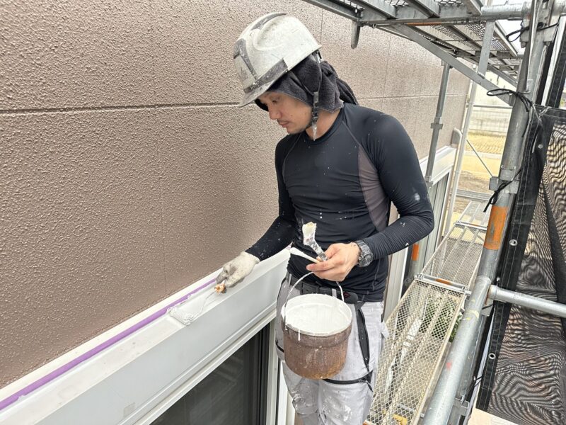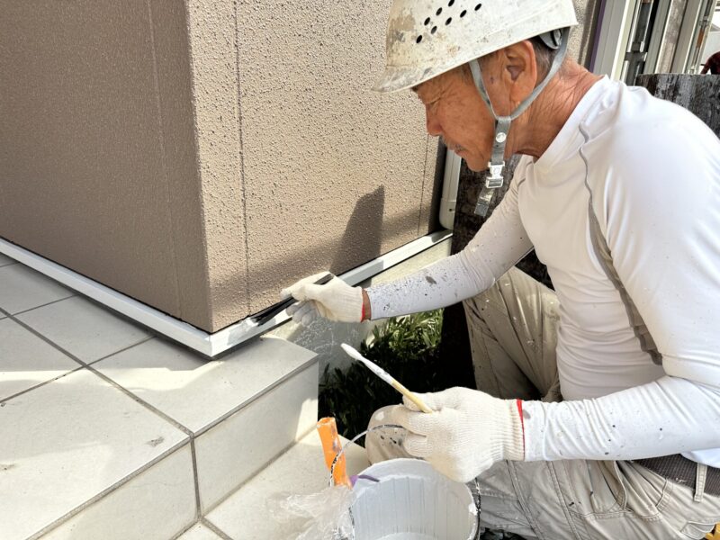 下塗り塗料はとても大切な工程で、上塗り塗料がしっかり密着するように、たっぷり塗っていきました。乾燥時間、希釈率を守り、上塗りを行います。