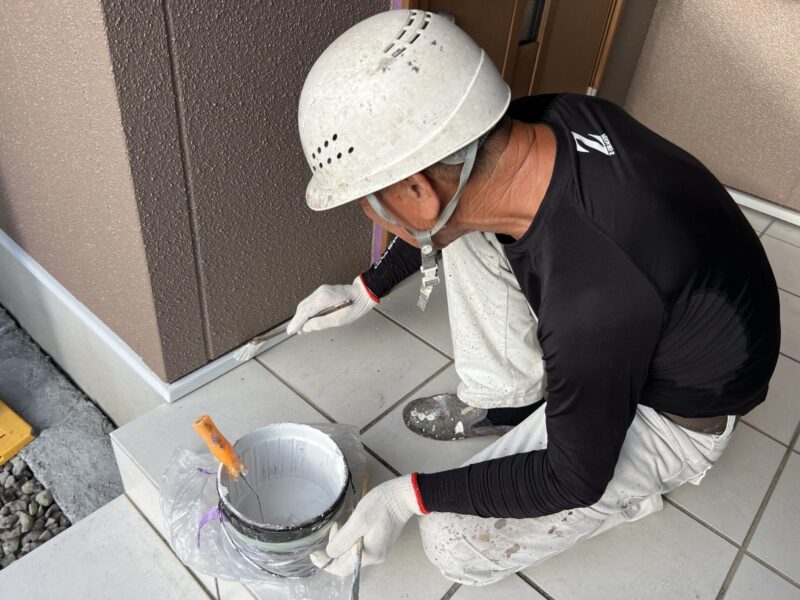 ローラーと刷毛を使いわけ、塗り残しがないように塗装させて頂きました。こちらの物件は鉄部塗装の途中で、本日の現場作業は終了です。