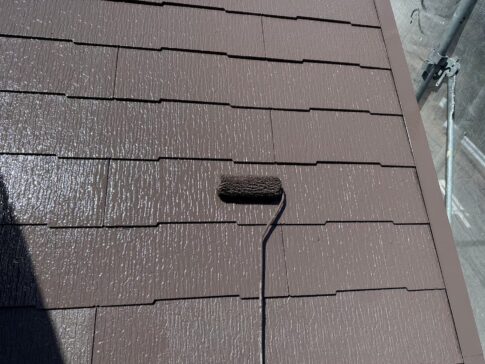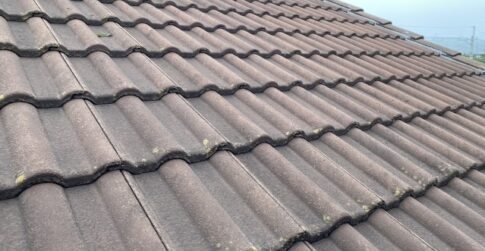 屋根は苔、外壁はチョーキングなど、経年劣化で色々なところが汚れていたのですが、こちらの物件で一番劣化していたのは、天井のプリント合板です。劣化でプリントしている物が手で触るとポロポロ落ちてくる状態で、その上から塗装したのでは塗料がまったく密着しないので、高圧洗浄で徹底的に洗い流しました。高圧洗浄すると、浮いているプリントは綺麗に剥がれました。こちらの物件は高圧洗浄を完了し、本日の現場作業は終了です。