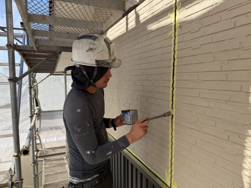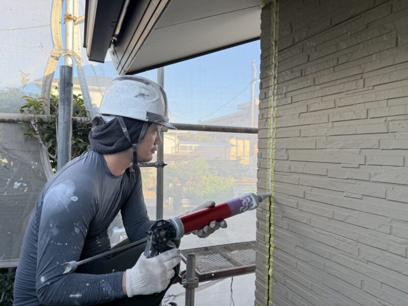 プライマーを塗ったあと、プライマーの乾燥を確認し、新しいコーキングを打っていきます。