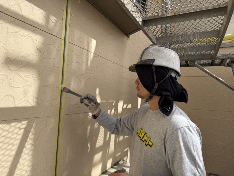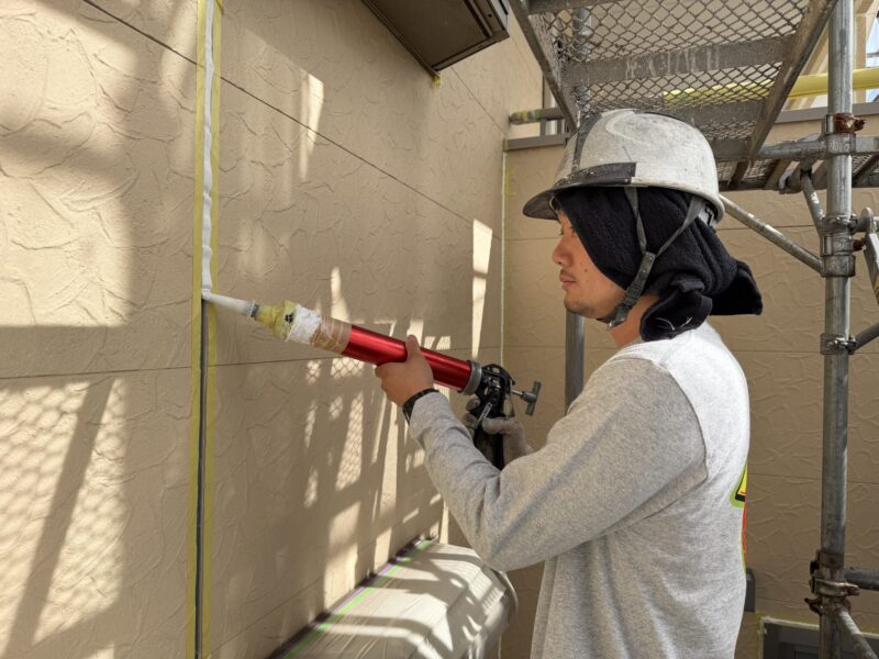 プライマーを塗った後、新しいコーキングを打っていきます。
