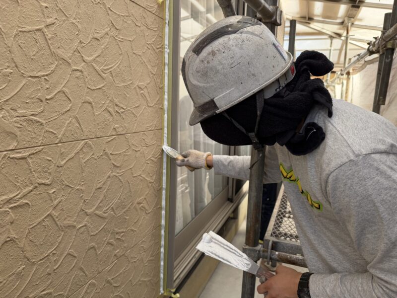 空気が入らないように、確認しながら作業を行いました。こちらで使用したコーキングは、期待耐候年数30年のおすすめのコーキングです。