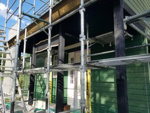 - キレイに塗れているのか、足場の下から見たのではいまいちわからない。