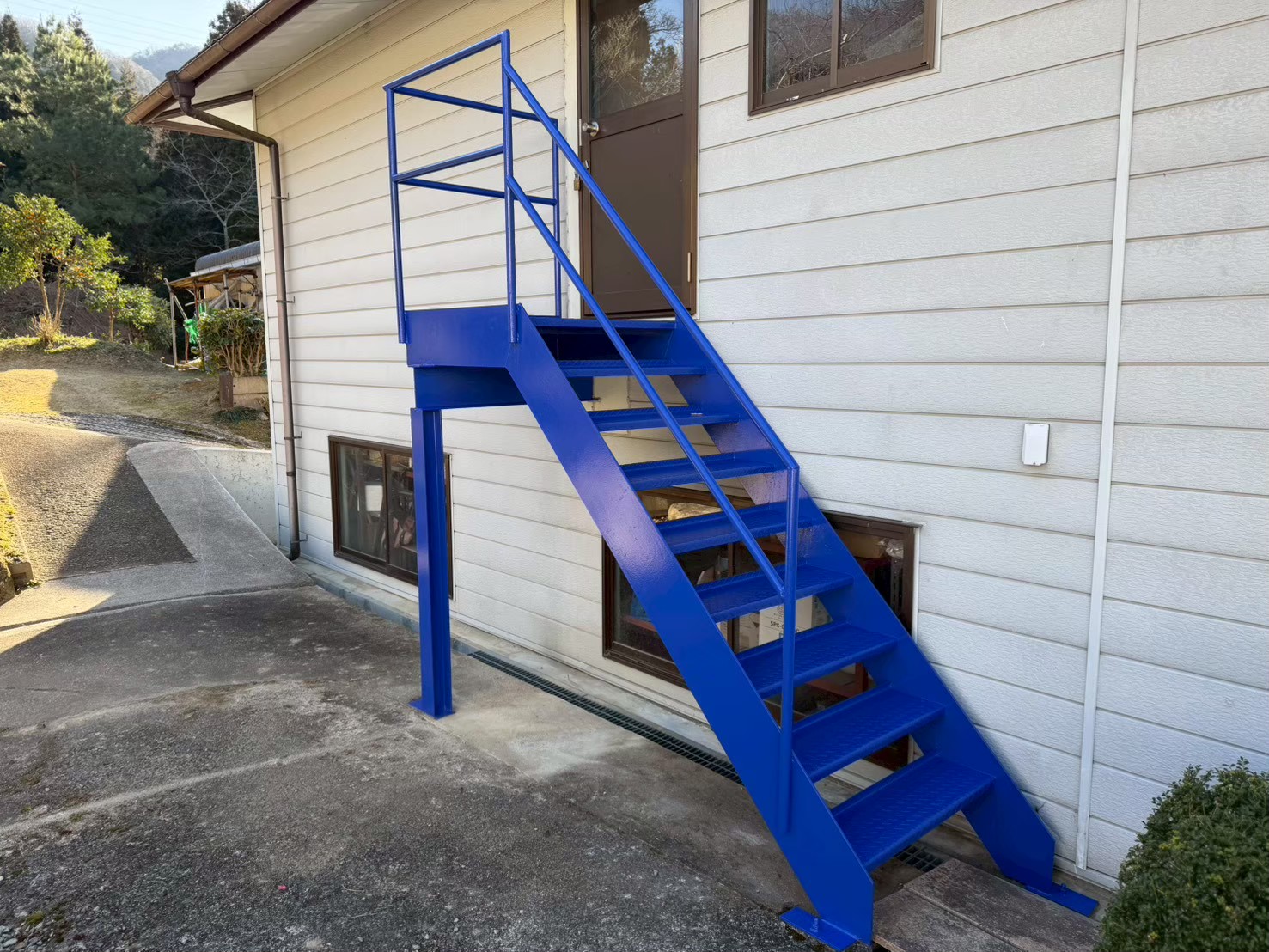 鉄骨でできた階段の塗装です。表面が白っぽくなっていましたが、鮮やかに塗り替えられ、とっても綺麗になりました。